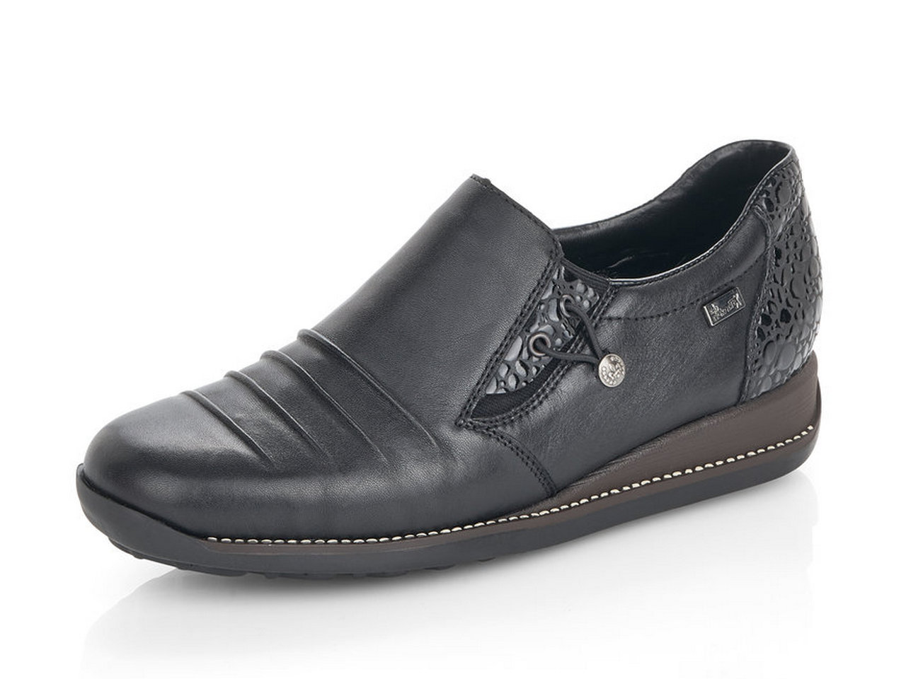 Skor med RIEKER-TEX tillverkas med ett vattenavvisande membran som ökar komforten under våta och kalla dagar. Membranet andas dessutom för att skapa ett behagligt fotklimat.