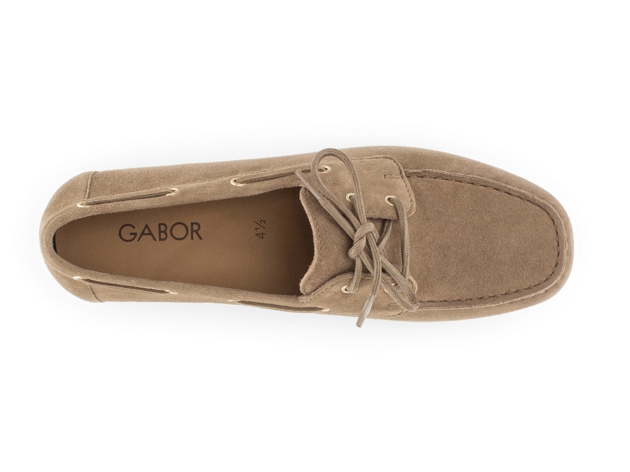 Seglarsko-inspirerad mockasin i ljusbrun mocka med Gabors välkänt höga komfort och kvalitet.