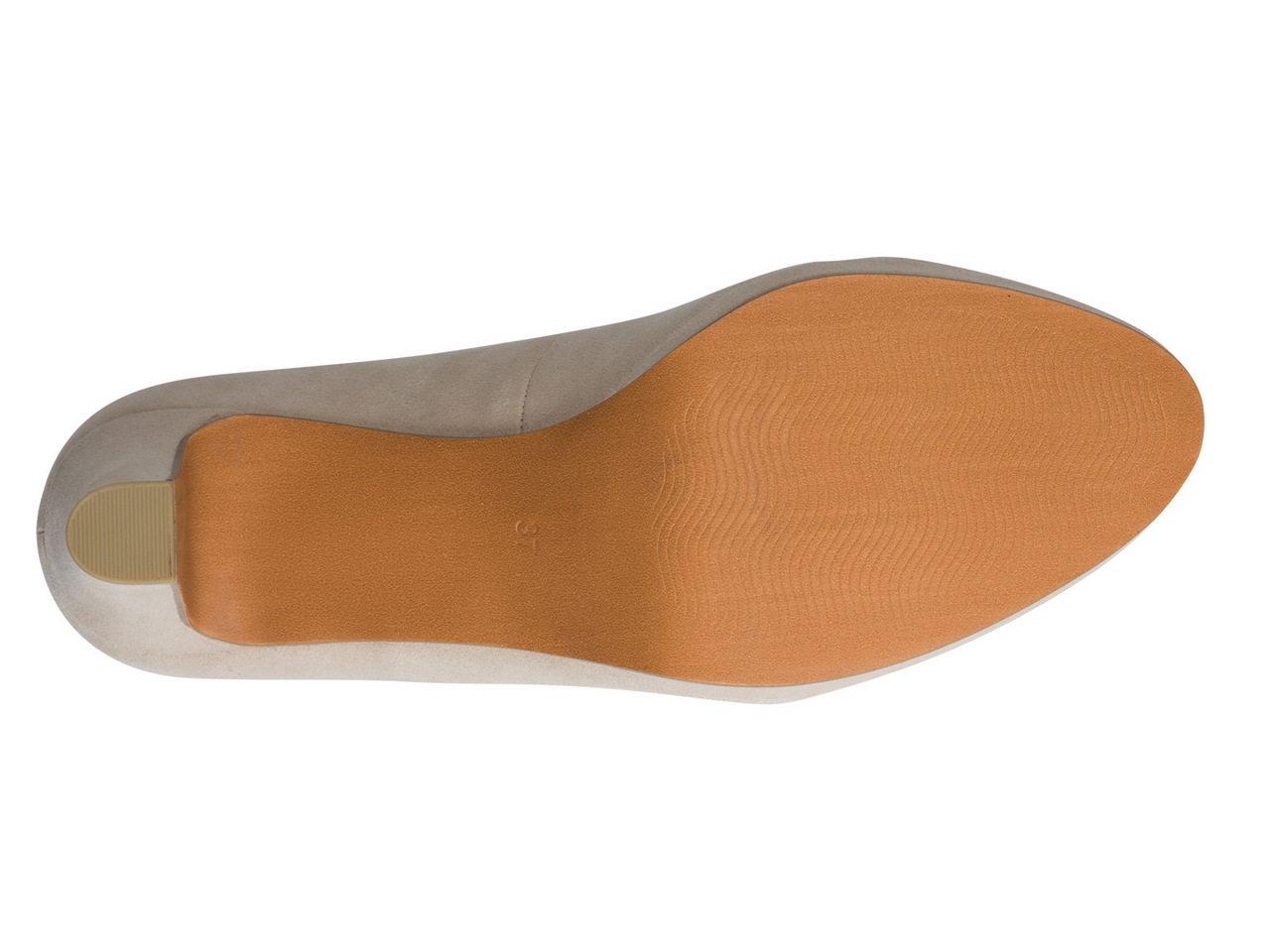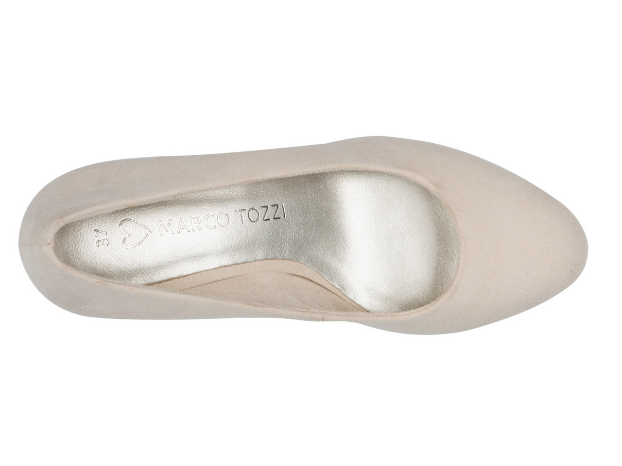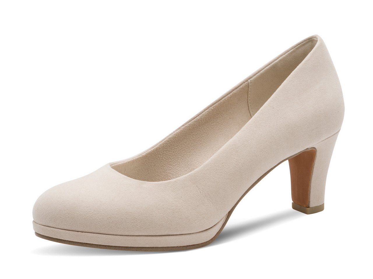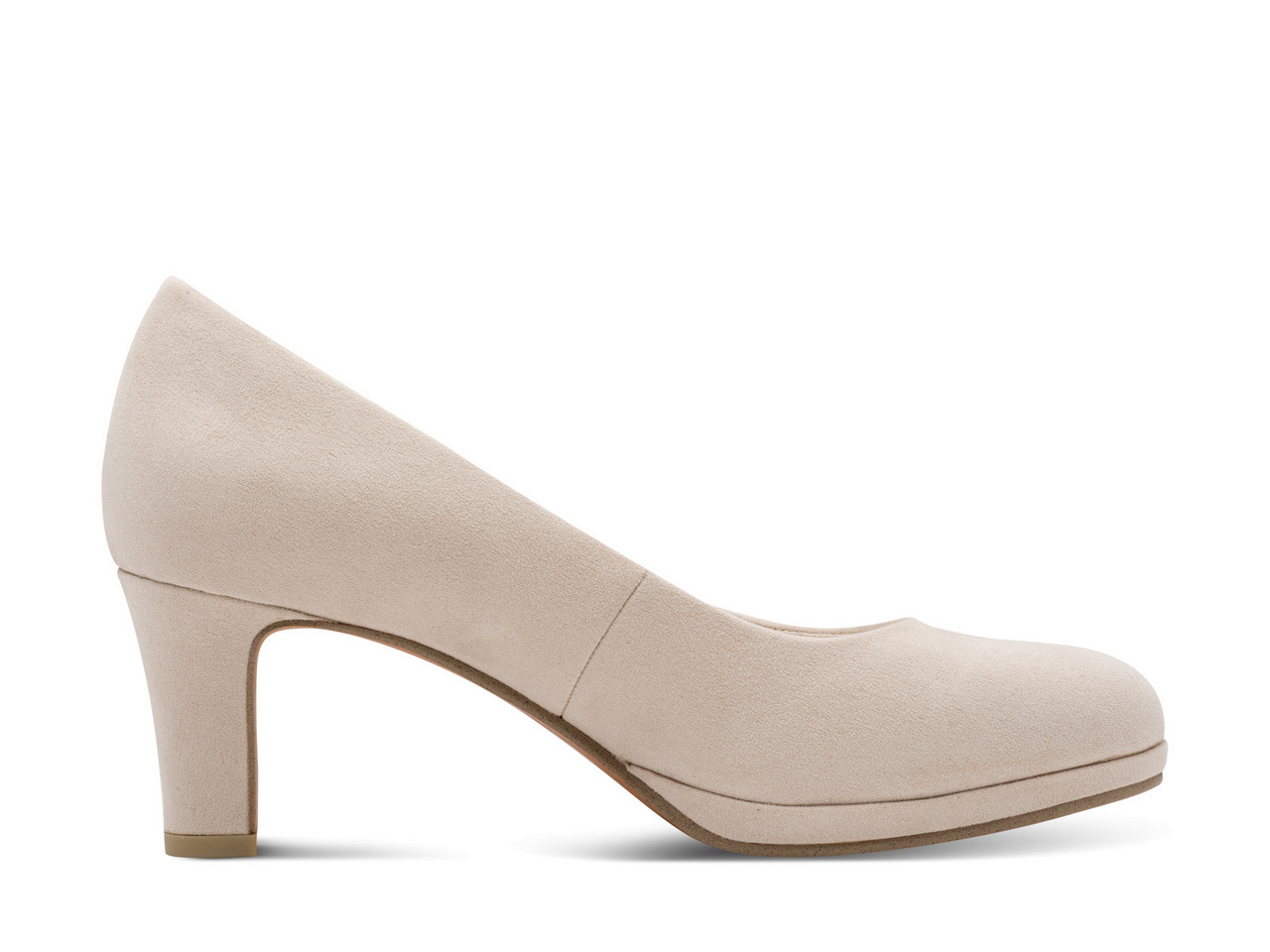 Klassisk pumps med platå-sula i begie mocka-imitaiton. Marco Tozzis skor märkta med Feel Me har en mjuk fotbädd som skapar en bra komfort för foten.