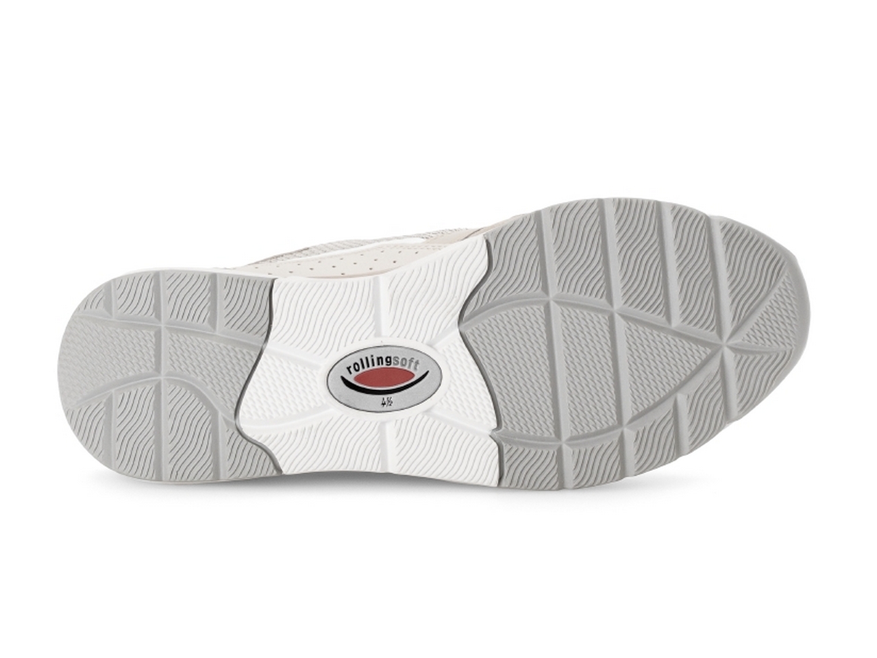 Teknologin bakom komforten i Gabors Rollingsoft-skor är en sula som är uppbyggd i flera lager. Stötdämpningen i hälen möjliggör ett mjukt steg. Den lätt böjda formen underlättar fotens rullande steg och minskar trötthet vid gång. En stabilisator stöttar fotvalvet och ger bra stöd.