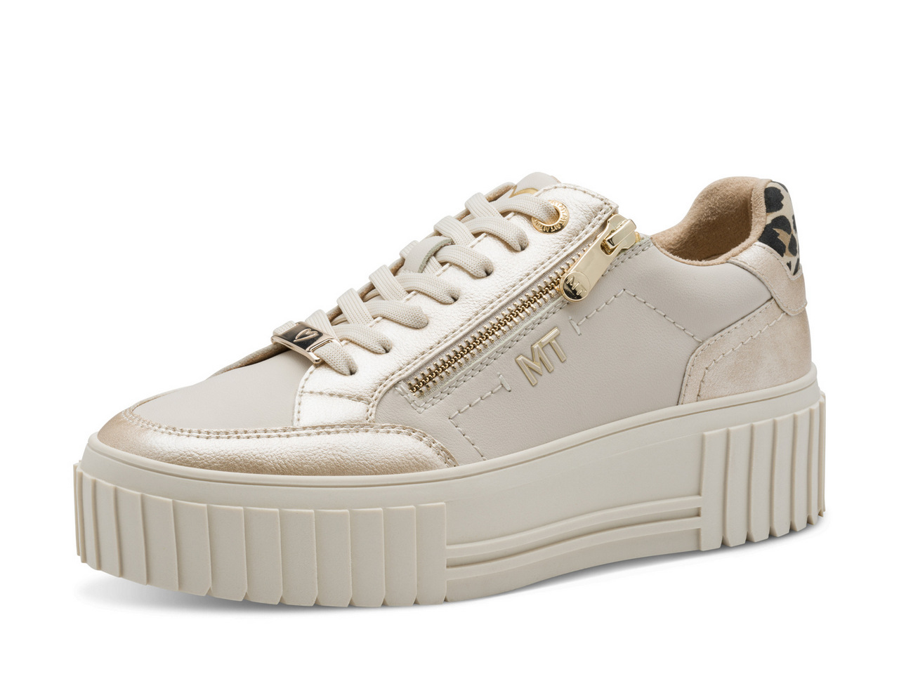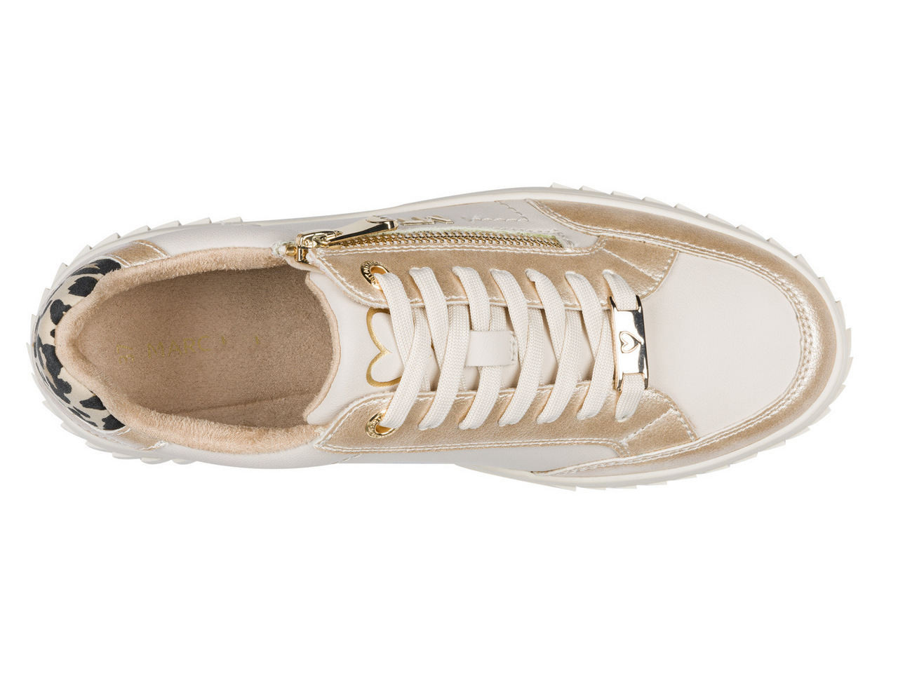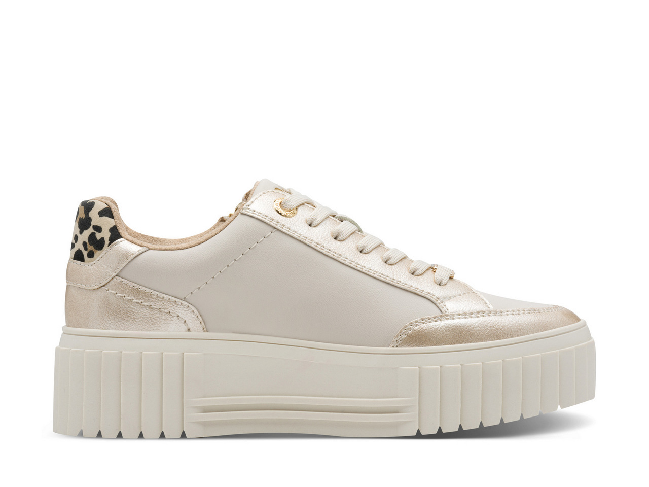 Trendig sneaker med platå-sula och detaljer i leopard och guld. Med en kombination av snörning och dragkedja är det enkelt att kliva i och ur samtidigt som du kan anpassa snörningen efter din fot.