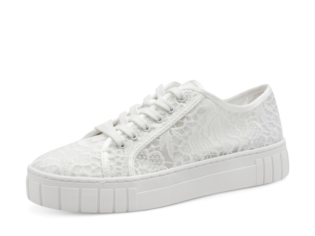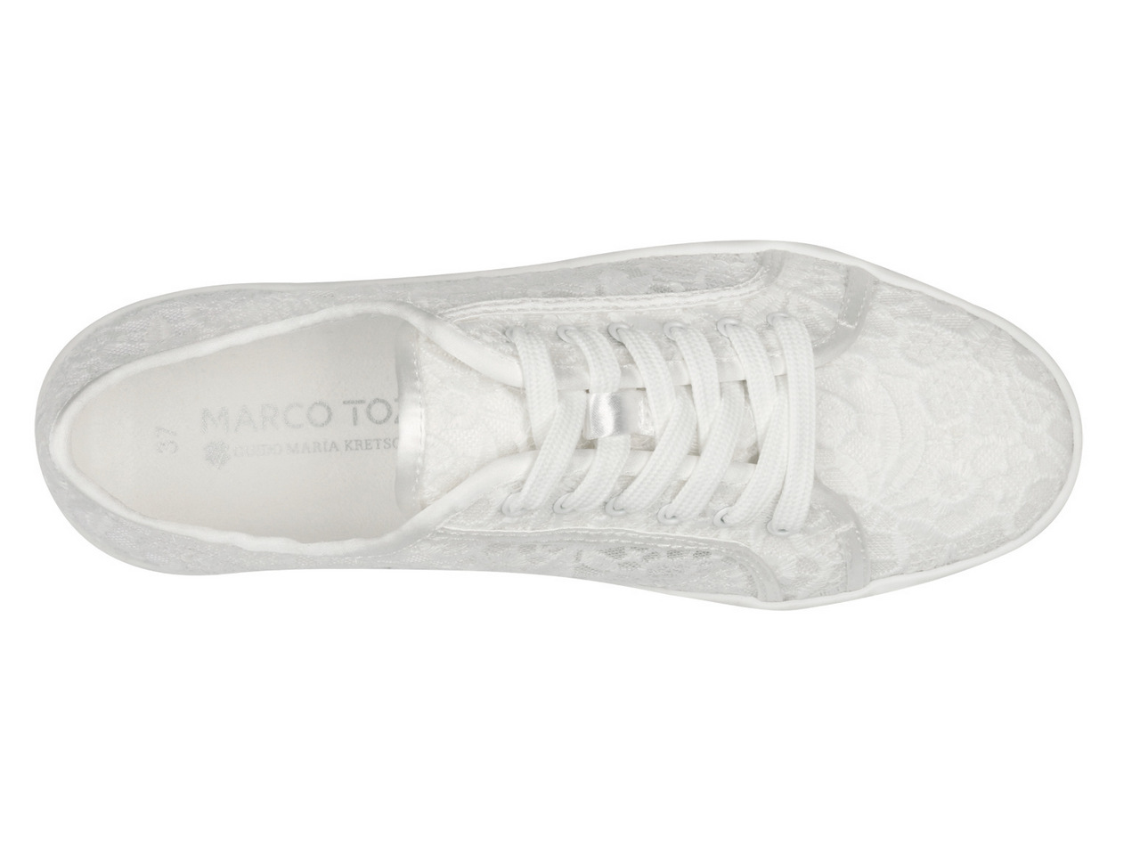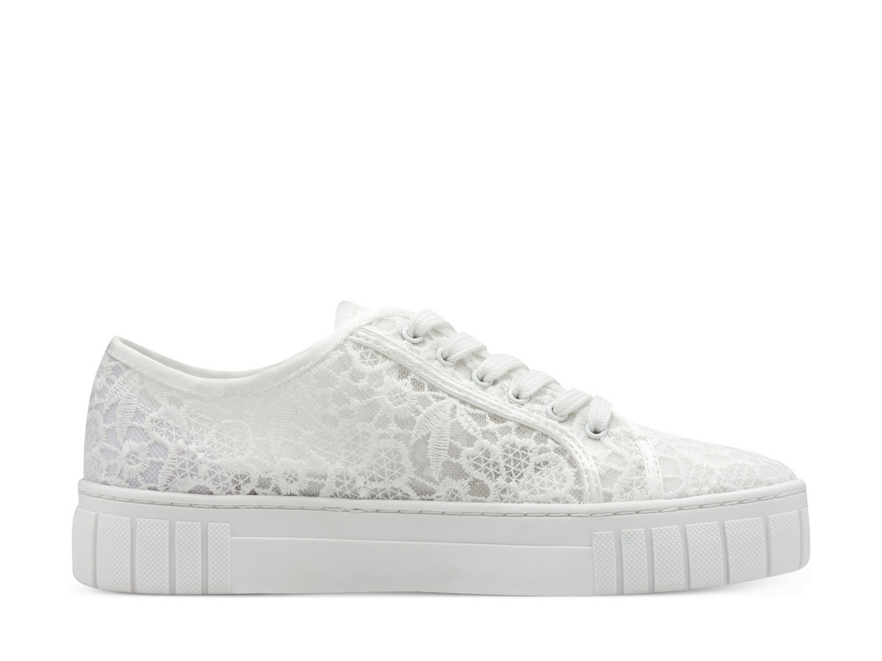 Vit tygsneaker med vit spets som är en del av Marco Tozzis bröllopskollektion. Men de är såklart lika fina att använda till vardags till ett par shorts, kjol eller varför inte med ett par jeans och vit t-shirt.