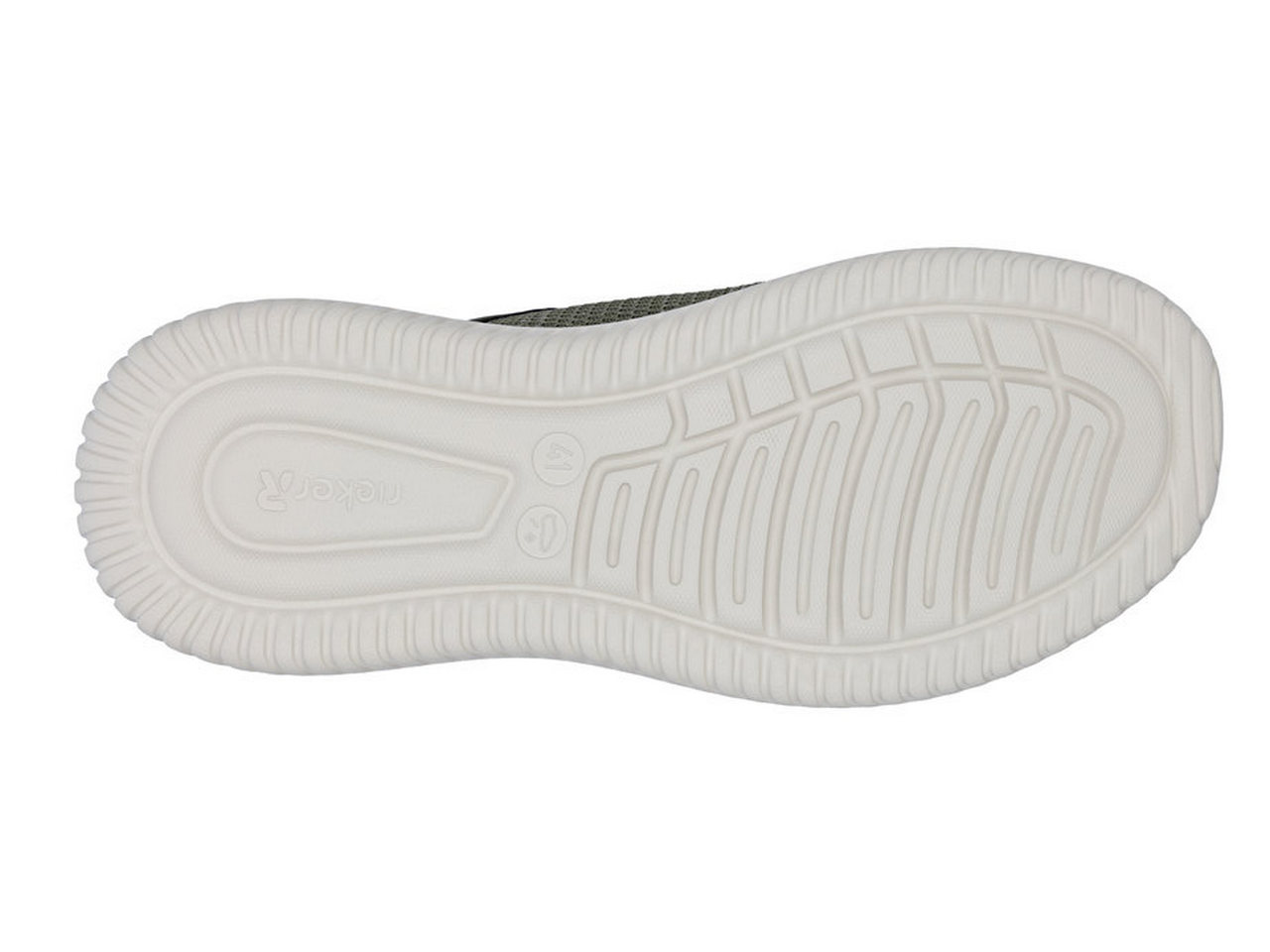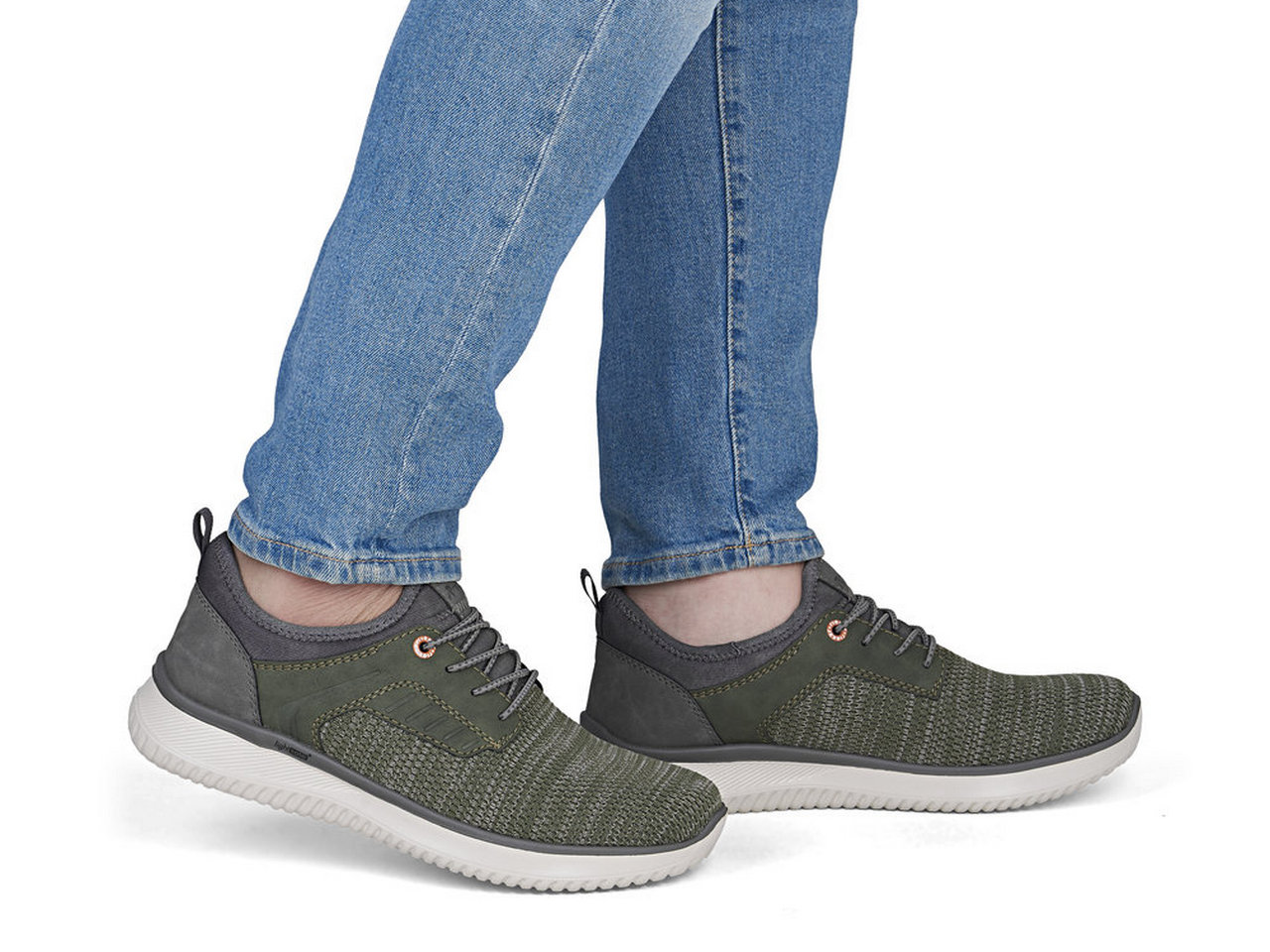 Kaki-färgad sneaker i textil med resårsnörning som gör skon enkel att kliva i och ur.